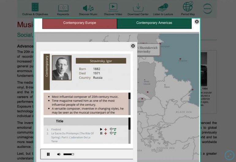 OnMusic Appreciation Extended Edition is a digital music appreciation textbook solution for an online or face-to-face music appreciation course that fits in with and complements existing teaching and learning workflows. All course elements are integrated and easy to use.